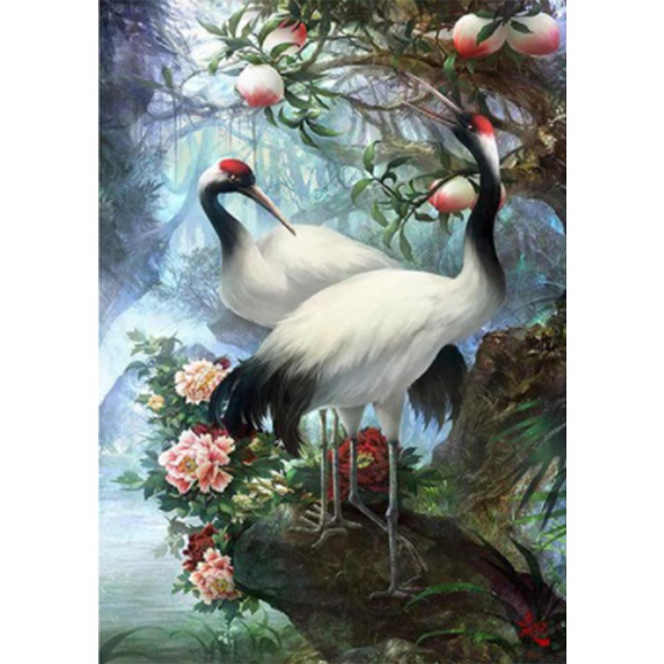 5D DIY белый журавль со стразами животное алмазная живопись картина полная круглая Алмазная мозаика подарок набор для вышивки крестиком Full Round 20x30CM