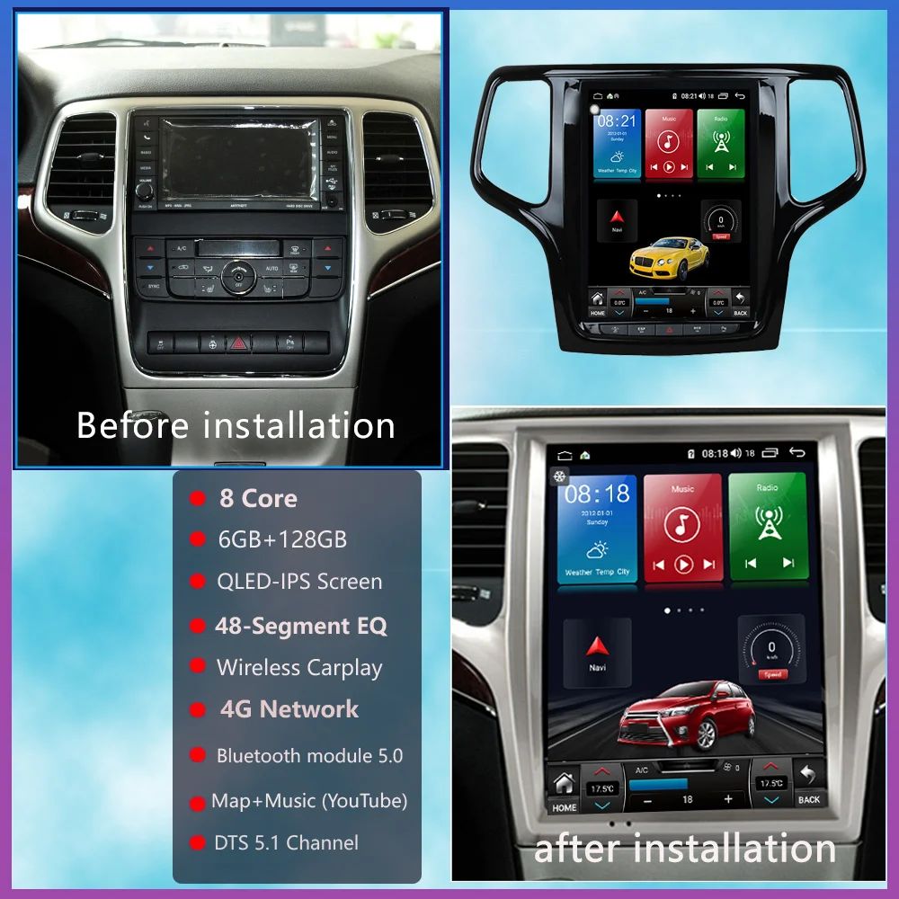 5G Android 11 Автомобильный мультимедийный радиоплеер 5G DVD 128 ГБ для Jeep Grand Cherokee 2008 + Carplay GPS навигация Авторадио головное устройство