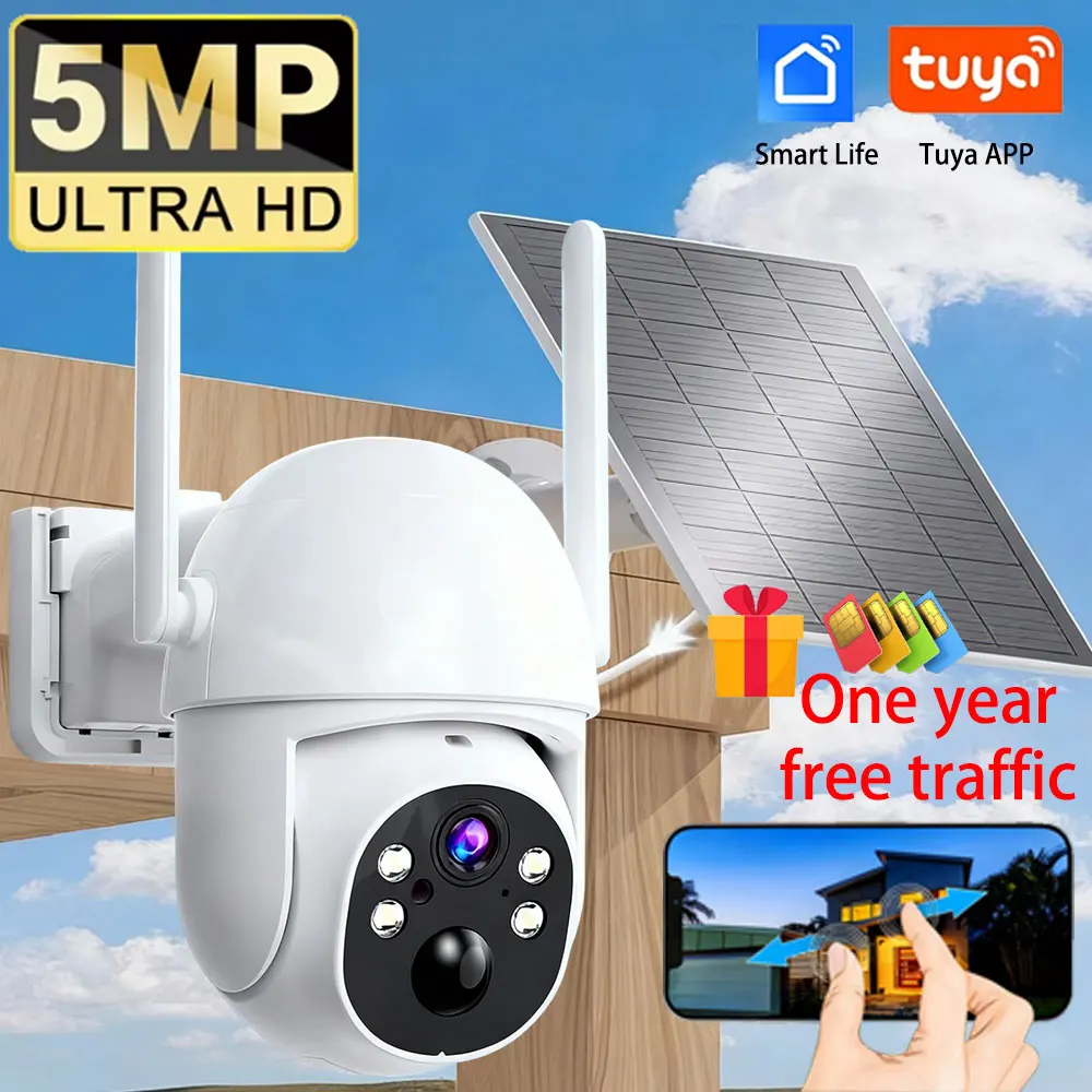 5MP Tuya 4G One Year Of Data Surveillance Smart Security Camera Solar PTZ PIR Detection Full Color Night Vision Two-Way Audio