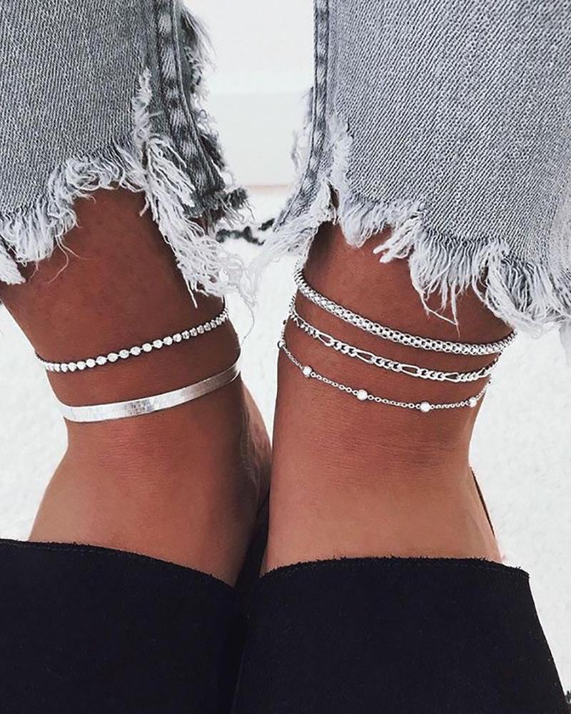 5PC Simple Chain Anklet, Silver