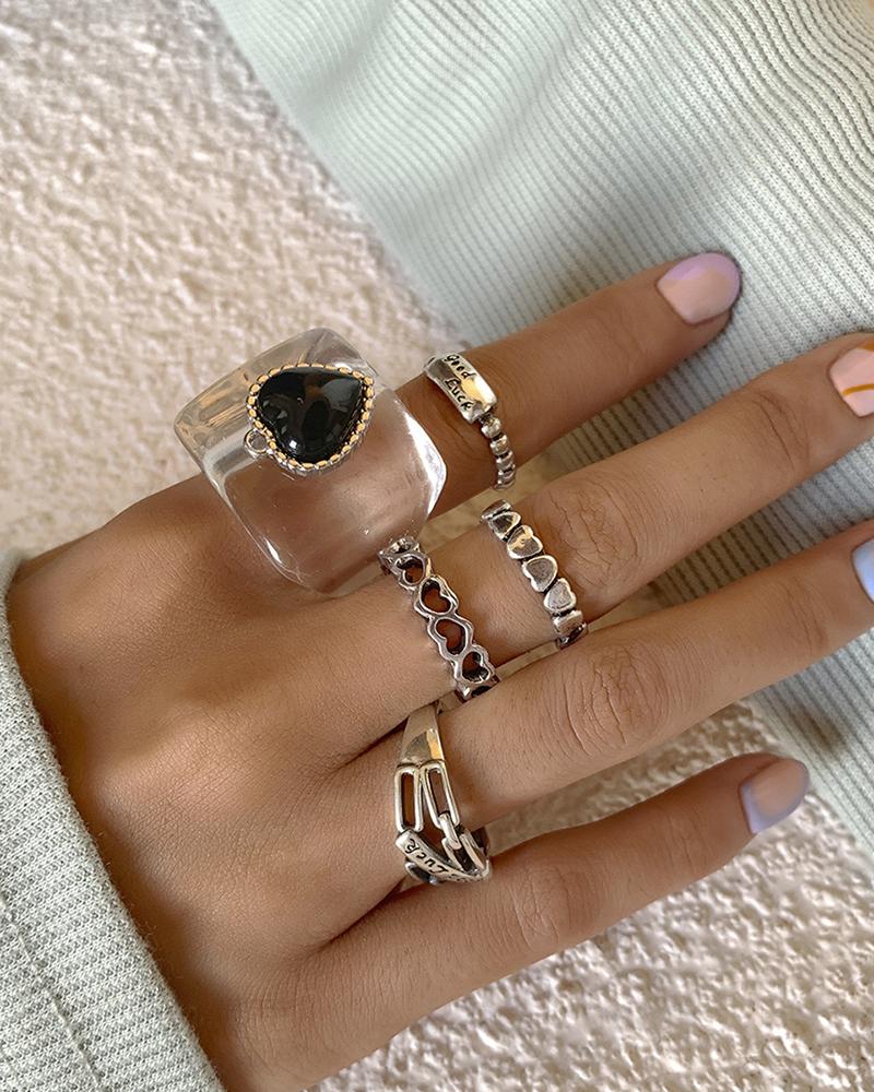 5PCS Heart & Letter Decor Clear Metal Rings Set