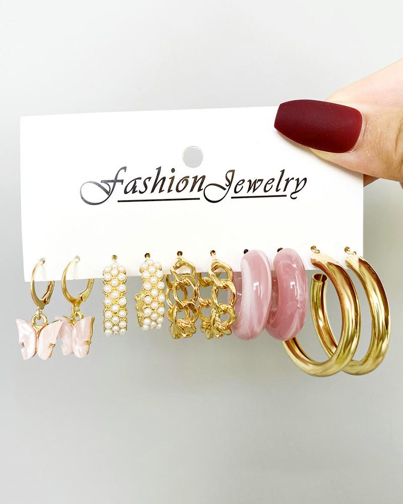5Pairs Rhinestone Butterfly Pattern Hoop Earrings Set, Gold