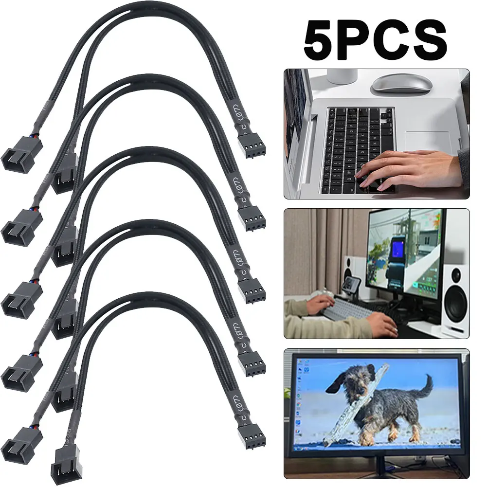 5Pcs CPU PC Case Fan 4 Pin Extension Y Splitter Cable 4 Pin to 3/4 Pin (Black)