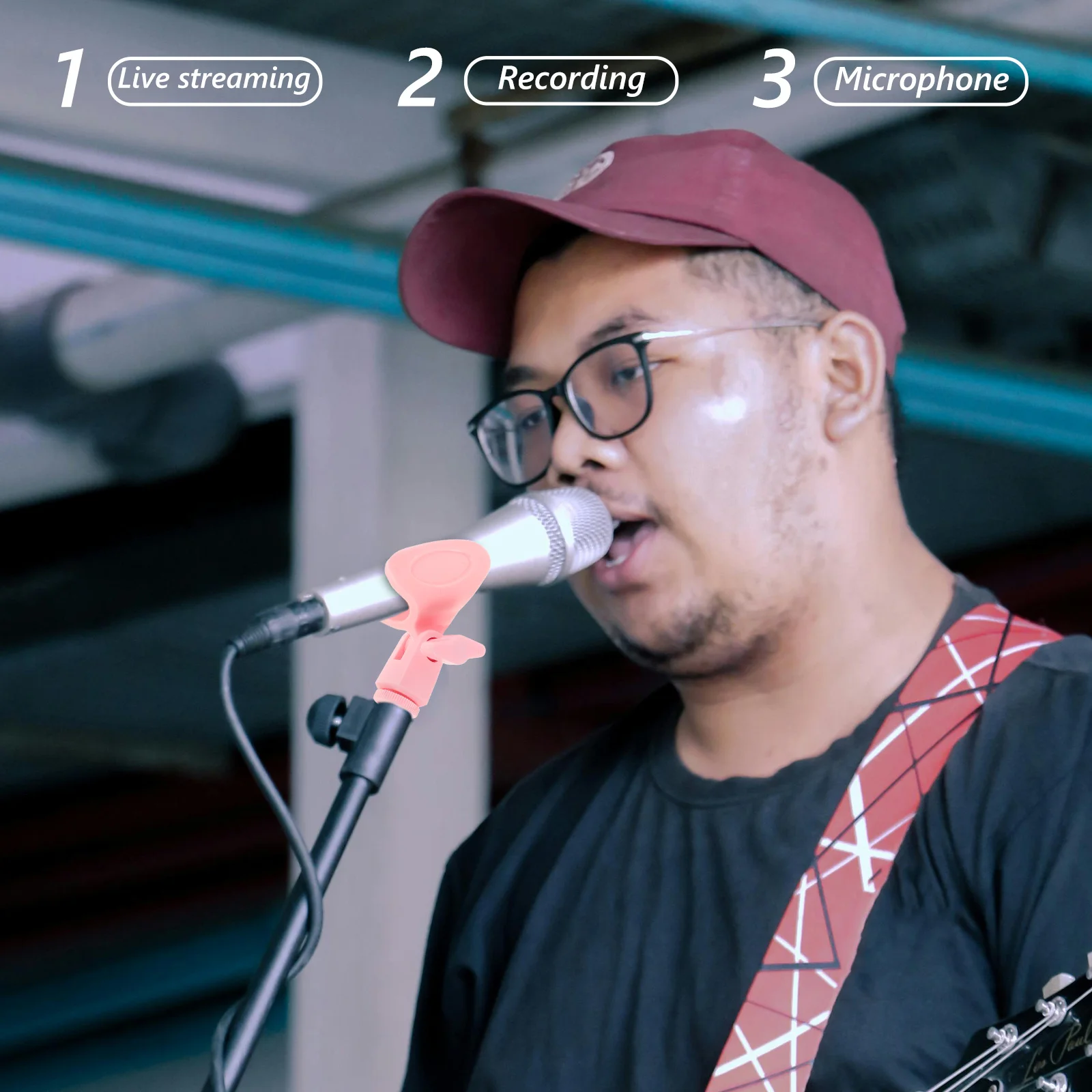 5Pcs Microphone Spring Clip Pink Adjustable Universal Mic Holder for Broadcasting Recording Streaming Stable Vibration Reduction
