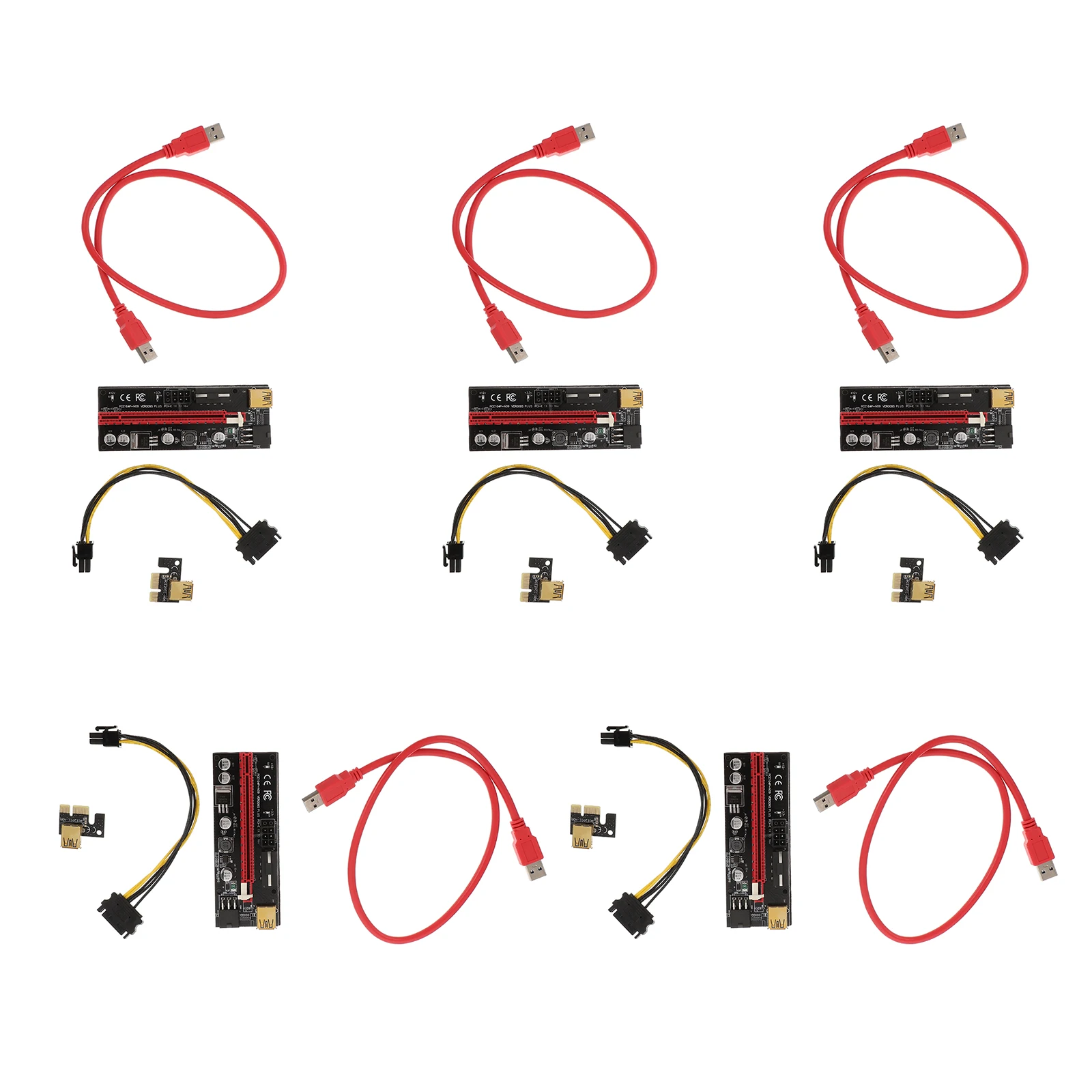 5Sets Pci- Card Extension Cable Stable 6pin Enhanced Power Supply 3m Shielded Wire Pci- Riser Adapter