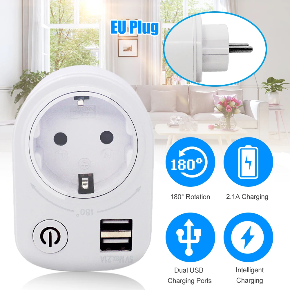 5V 2.1A Electric Dual USB Charger Adapter Intelligent Plug-in Wall Socket Charging Power Switch Outlet Home Travel