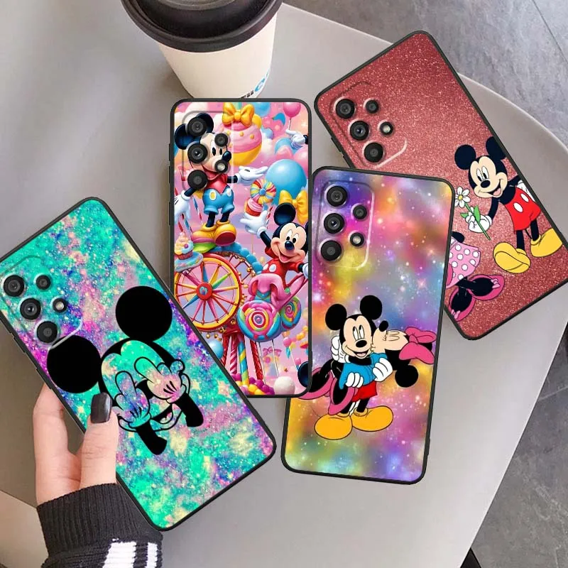 Mickey Minne Sequin Popular Phone Case For Samsung A73 A72 A71 A55 A54 A53 A52 A51 A13 A22 A16 A15 A05s A14 A05 A06 5G Black