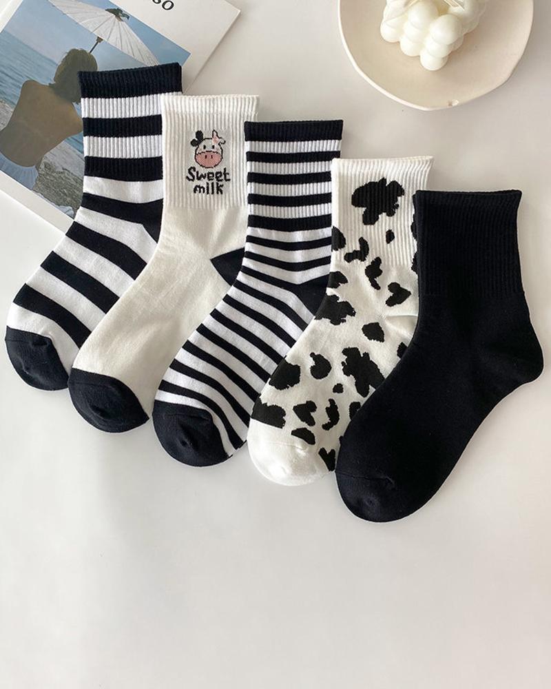 5pcs Black And White Long Socks Set, Style1