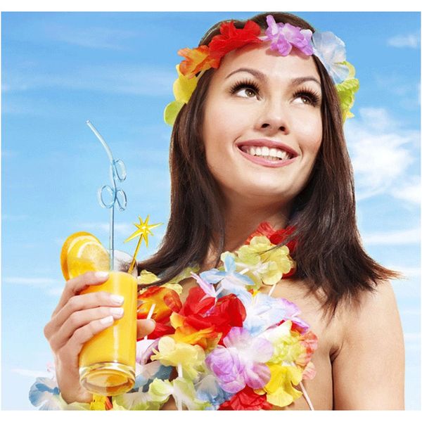 5pcs hawaiian flower leis garland necklace artificial flower pool party fancy hawaii beach diy party fun decoration wreath a7040 f wmtnci