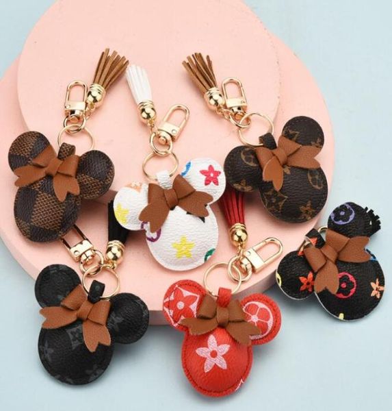 5style fashion tassel mouse design car keychain flower bag pendant charm jewelry keyring holder for men gift pu leather keychains9703947, Silver
