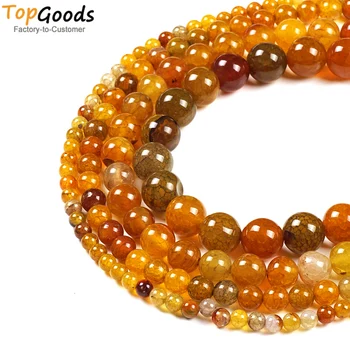TopGoods Natural Stone Beads Yellow Vein Agate Round Loose Gemstone Beads DIY Jewelry Material 4/6/8/10mm for Jewelry Making