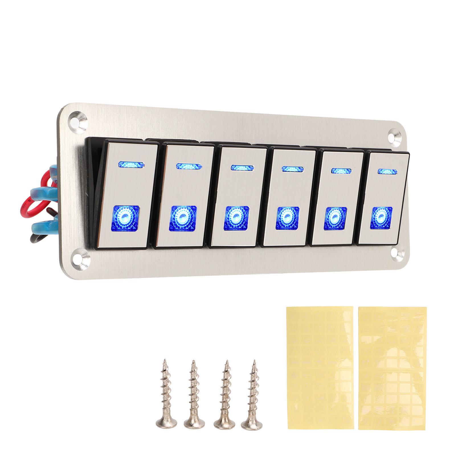 6-клавишная панель клавишных переключателей 12 В 24 В с синим светодиодом, водонепроницаемая, однополюсная, вкл./выкл., предварительно проводной переключатель для автомобиля, лодки