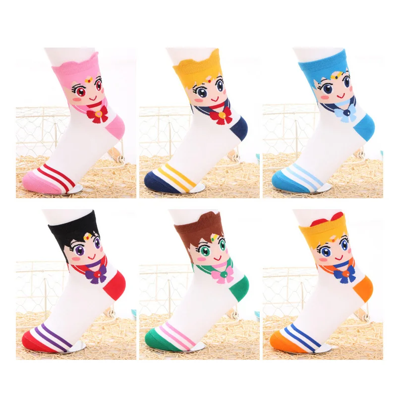 6 пар в партии; С рисунком из аниме, женские футболки с принтом в виде носки Симпатичные носки для девочек, носки-невидимки из хлопка; Тапочки; Сезон лето; Женские полуботинки; Женские туфли кавайные носки
