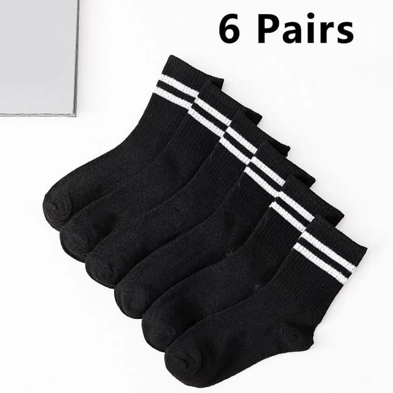 6 пар/лот, комплект чулок средней длины для мужчин, однотонные черные и белые дышащие носки EU39-45 US7-11
