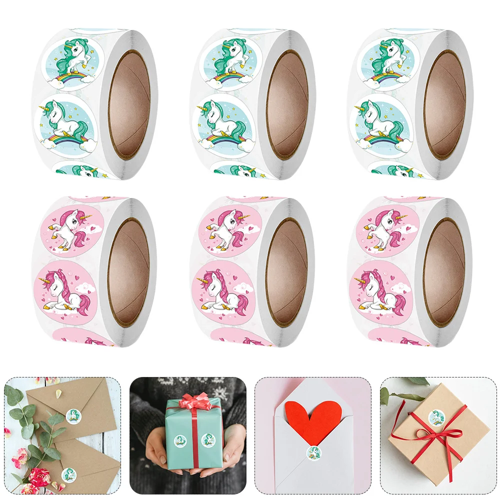 6 рулонов наклеек, Подарочные бирки, круглая наклейка, Упаковочная наклейка s, свадебные конверты, единорог, наклейка s, клейкая наклейка