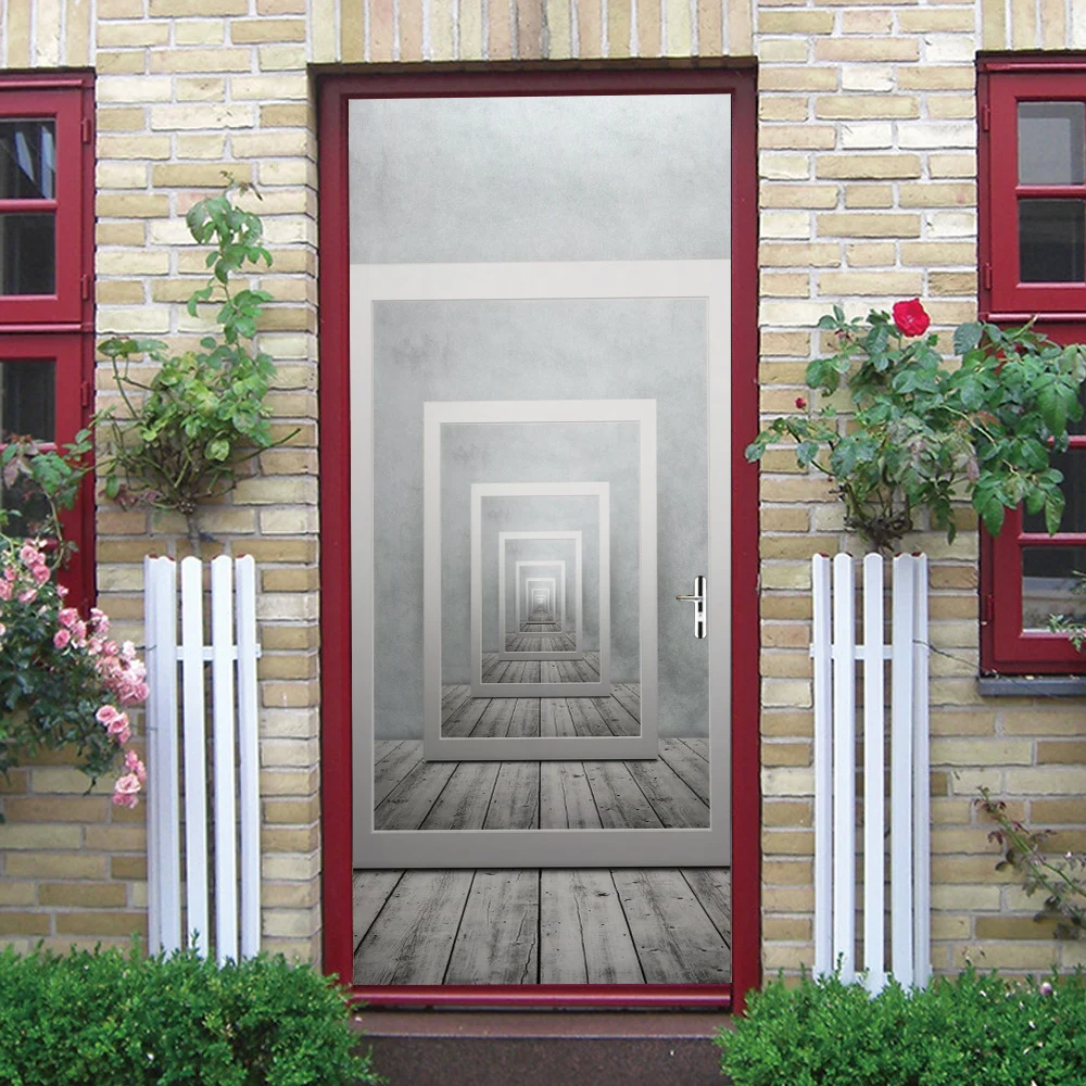 Self Adhesive Door Sticker White Gray Space Wallpaper 3D Nordic Style Living Room Bedroom Door Art Mural Sticker Wall Decals