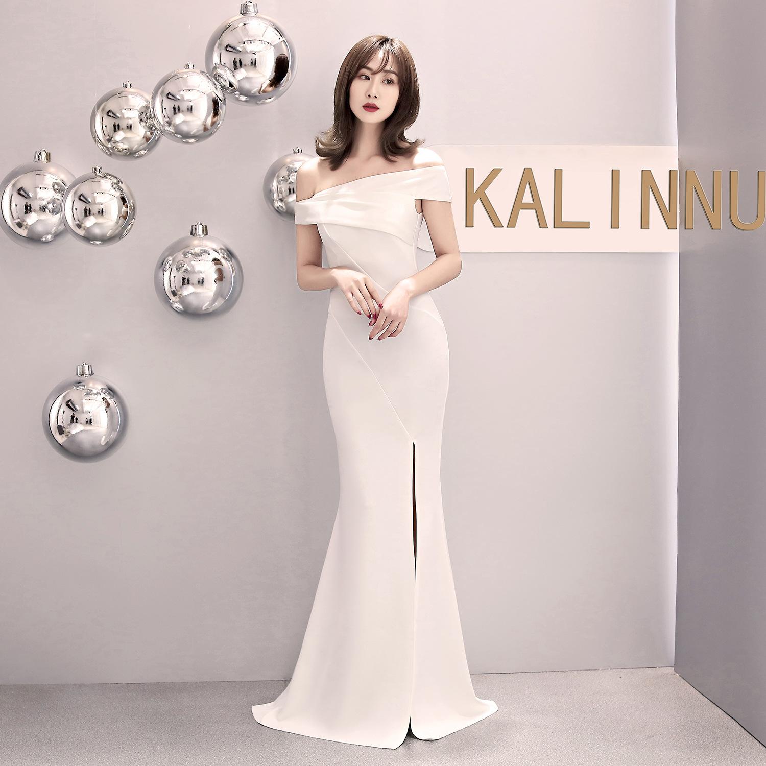 6 цветов банкетное вечернее платье для девочек модная вечеринка длинное элегантное сексуальное платье «рыбий хвост» вечерние платья L белый