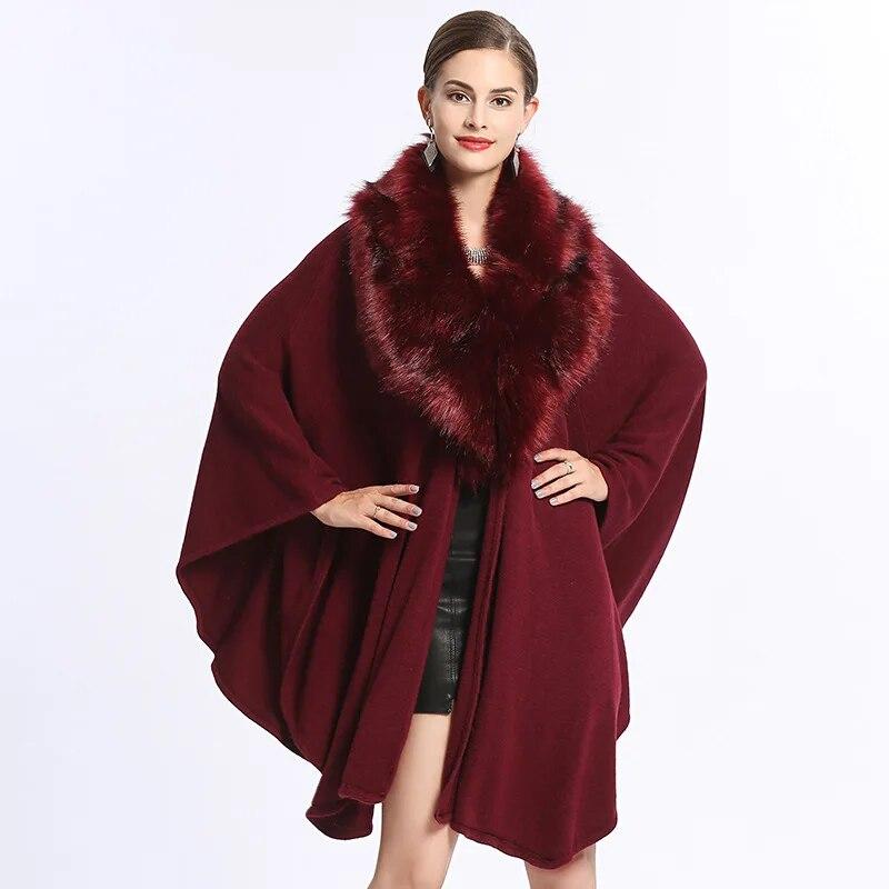 6 цветов, модный плащ из пашмины, кашемировая шаль, пальто, женское пальто с отделкой из искусственного лисьего меха, воротник, свободное пончо, большая накидка-маятник, уличная одежда One Size вино красного