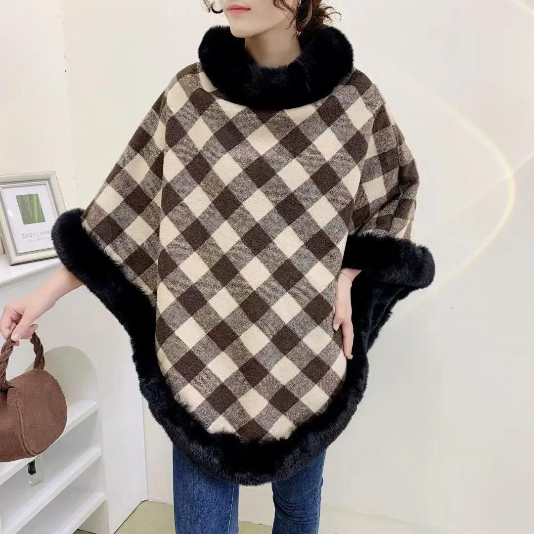 6 цветов, осенний свободный пуловер с искусственным кроличьим мехом, зимнее женское кашемировое пончо, вязаная клетчатая шаль, накидка, уличное пальто ONE SIZE