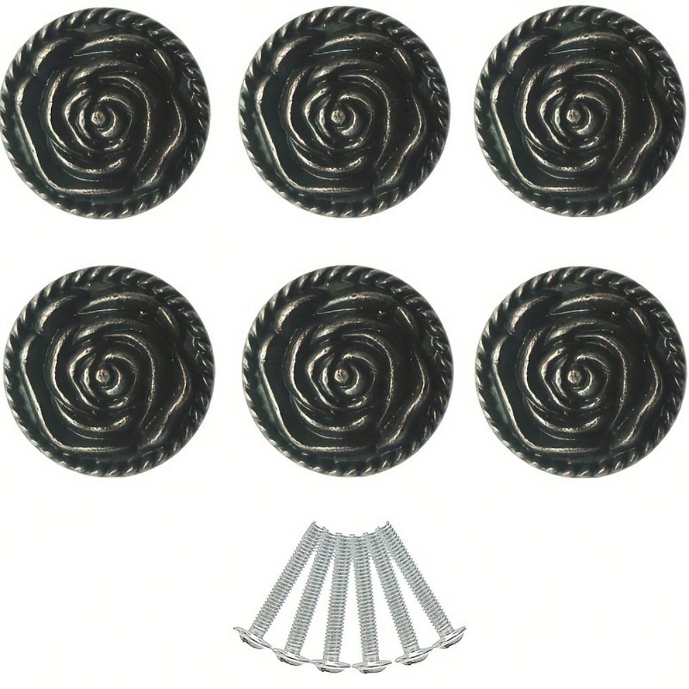 6 шт. Винтажные ручки для шкафа в виде розы, антикварные латунные ручки для дверцы комода, круглые ручки для ящиков из цинкового сплава в виде цветка чёрный
