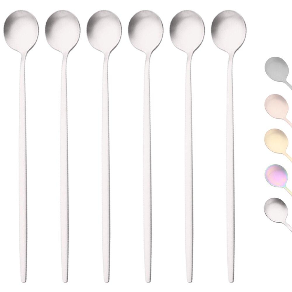 6 шт. Золотая ложка для перемешивания кофе, чая с длинной ручкой, десертные ложки для мороженого, мини-совок, кухонная посуда из нержавеющей стали, посуда серебряный