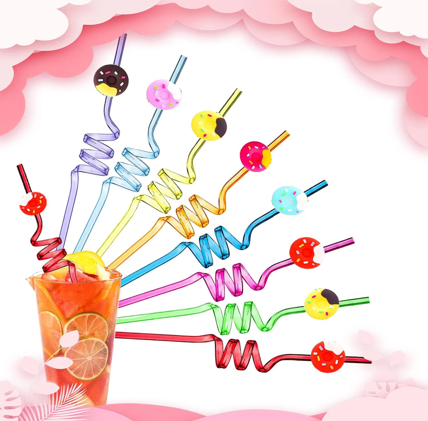 6 шт. Красивые праздничные соломинки для пончиков, многоразовые пластиковые жесткие соломинки и щетка для чистки для ежедневного использования на день рождения, праздничные принадлежности