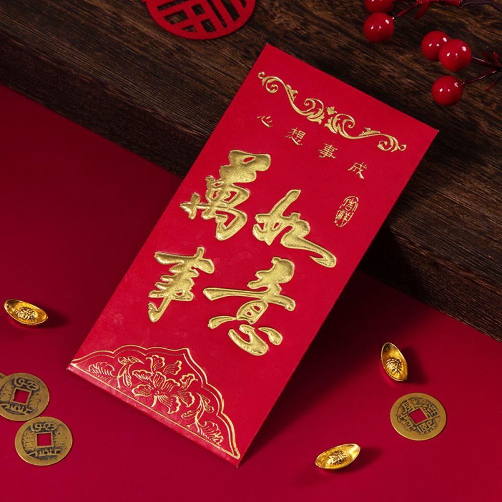 6 шт. Прямоугольные красные карманные конверты в китайском стиле для денег на удачу, классические китайские красные конверты для свадьбы 4