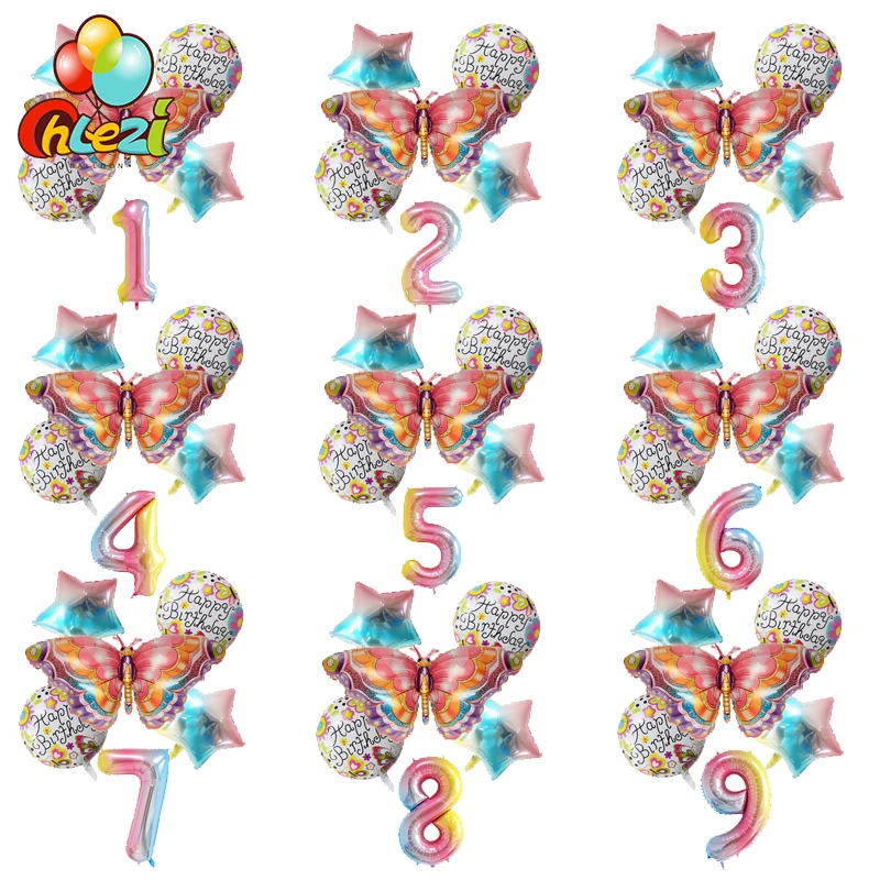 6 шт. Разноцветные цифры-бабочки, розовые Синие Бабочки-шары, 30 дюймов, радуга, гелиевые цифровые шары, украшения для дня рождения