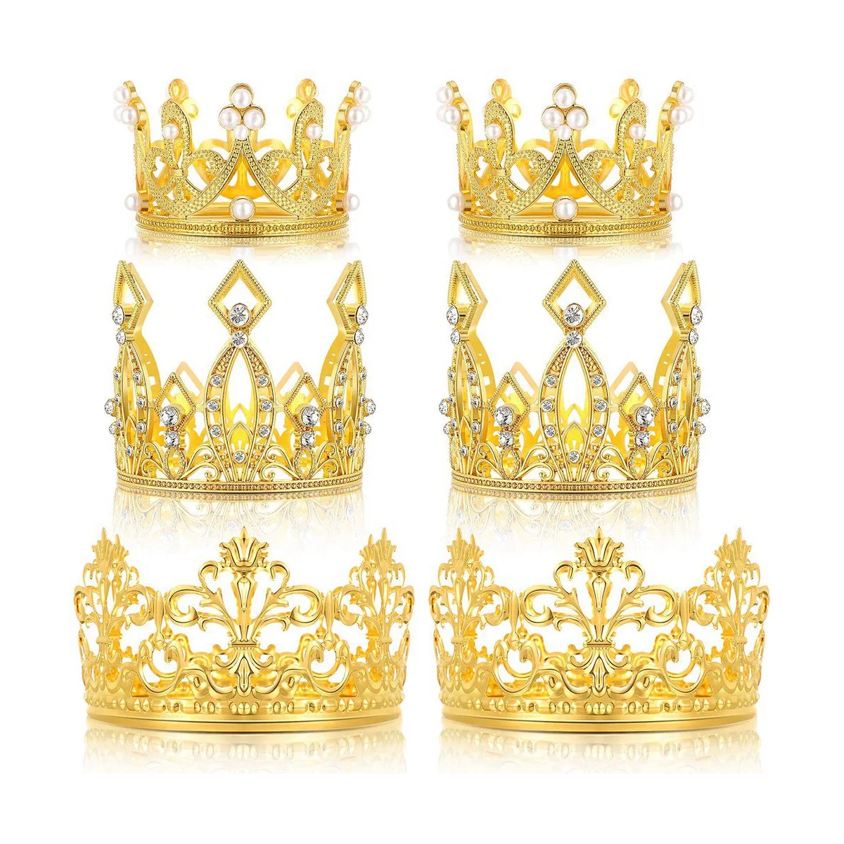 6 шт. Топпер для торта в форме короны на день рождения, топпер для торта, Хрустальный жемчуг, топперы для кексов на свадьбу, день рождения