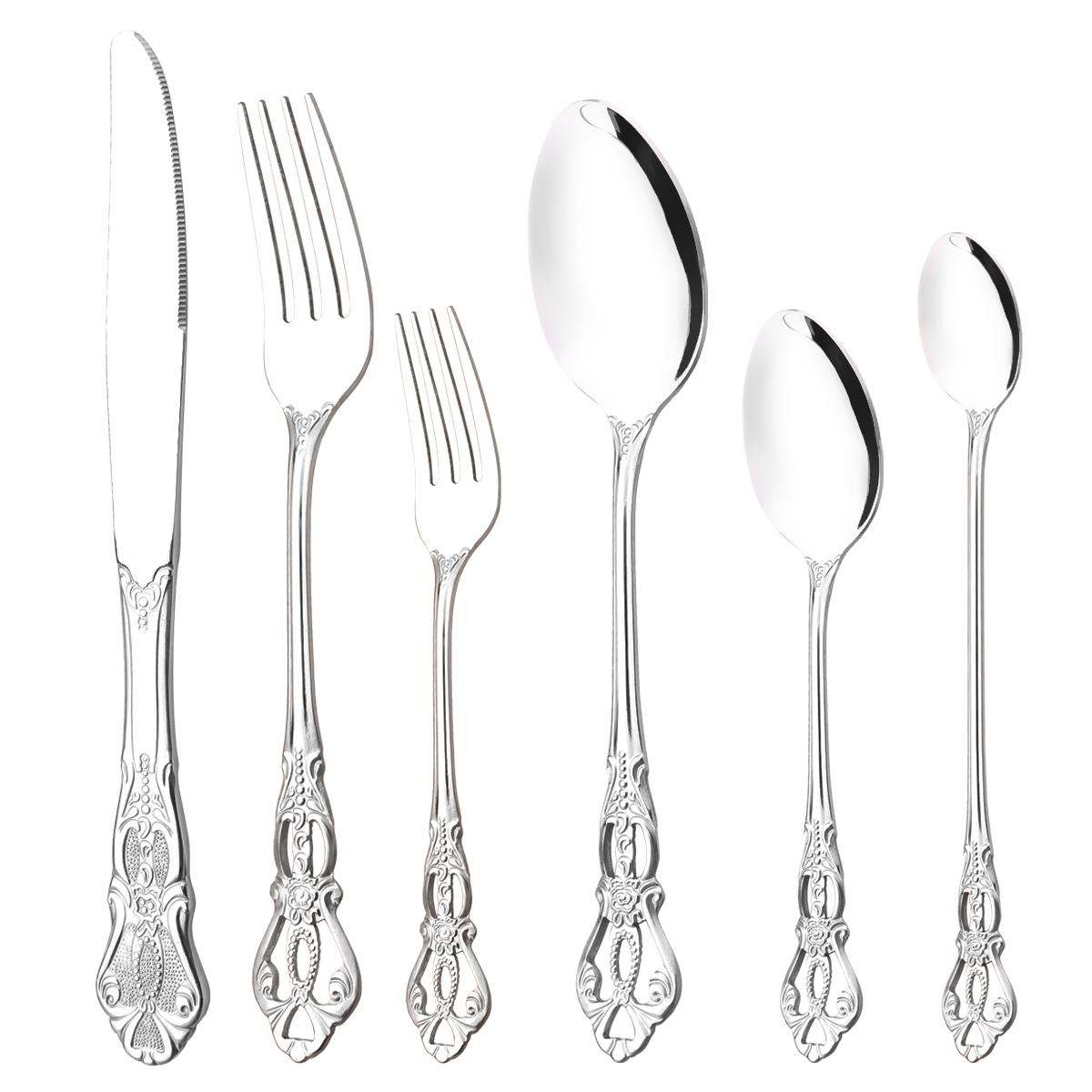 6 шт., винтажный набор столовых приборов, набор столовых приборов из нержавеющей стали, нож, вилка, ложка для перемешивания кофе, посуда, кухонное серебро серебряный