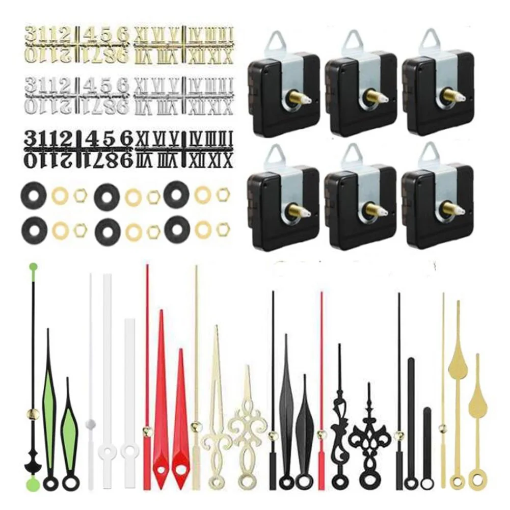 6 шт., детали механизма часового механизма, настенные часы «сделай сам», набор с 6 цифрами часов с 8 разными парами стрелок для часов «сделай сам»