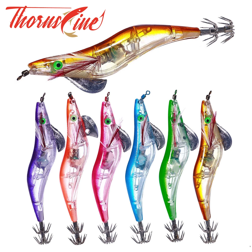 6 шт., жесткая приманка, светящаяся приманка для кальмаров, 21 г, 13 см, креветка, осьминог, каракатица, крючок для кальмара, дрель, деревянная кр...