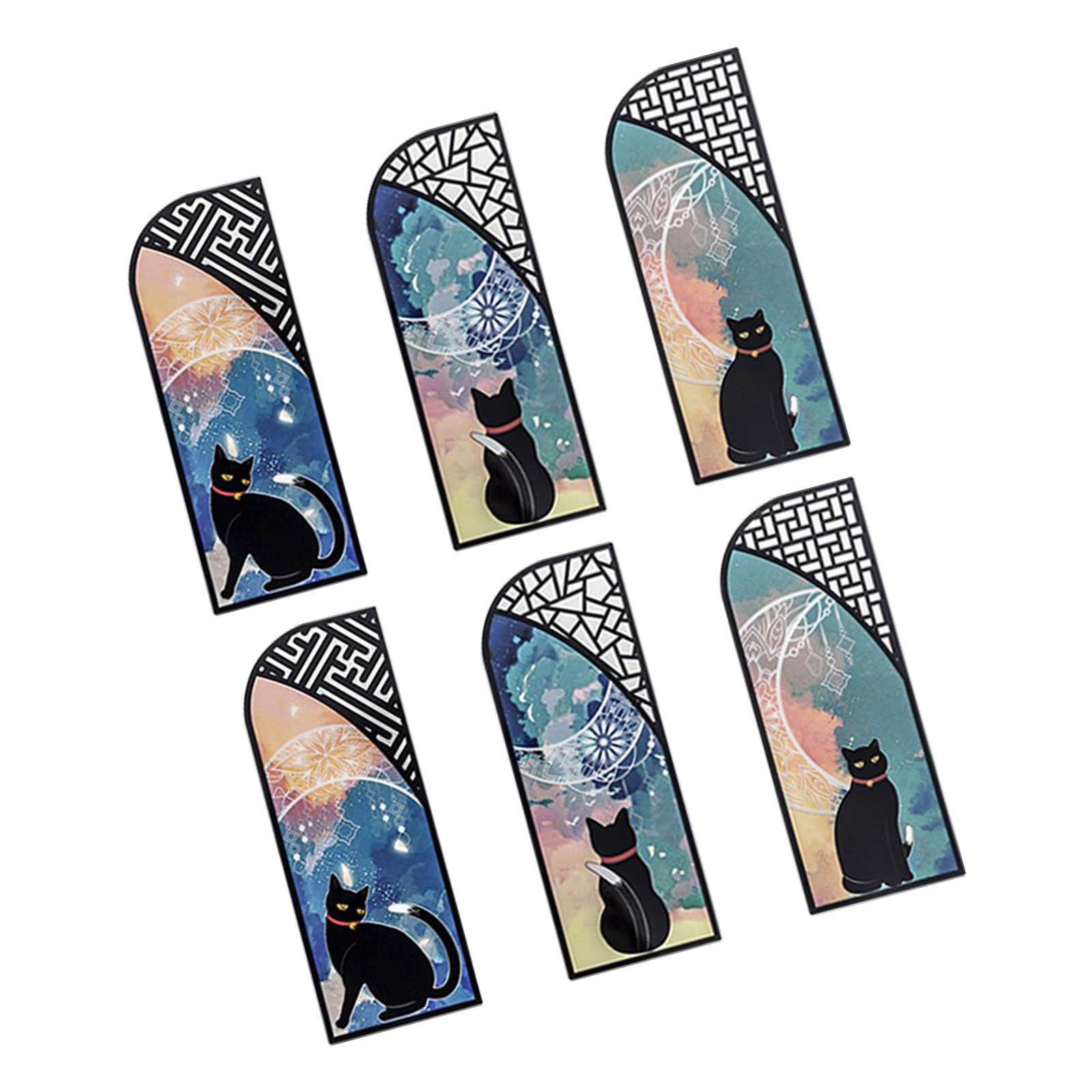 6 шт. закладок для книг с котами, прочные, водонепроницаемые, ПЭТ, яркие цвета, легкие, тонкие, черные, закладки для книг с котами для офиса
