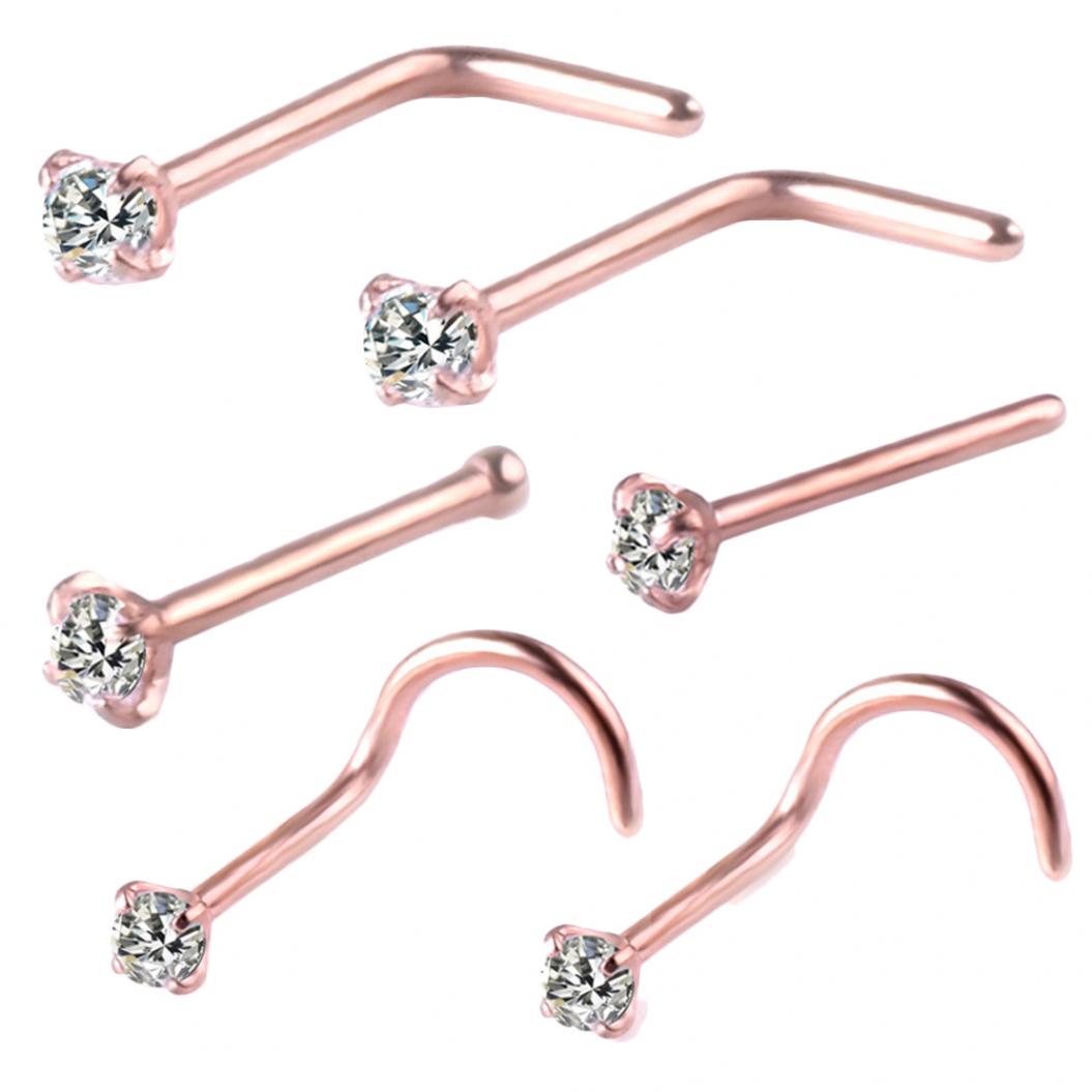 Набор изогнутых стержней для пирсинга носа с кубическим цирконием L-Bar 6шт розового золота
