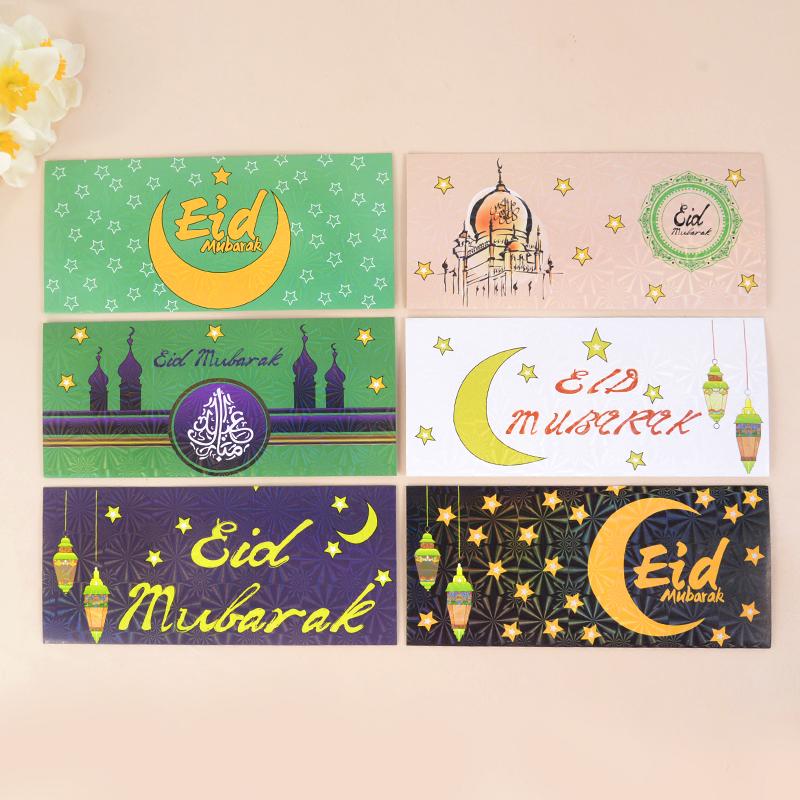 6 шт. конвертов на Ид Мубарак, держатель для подарочных карт, украшение на Рамадан Мубарак 2024, исламские мусульманские приглашения на Ид аль-фитр