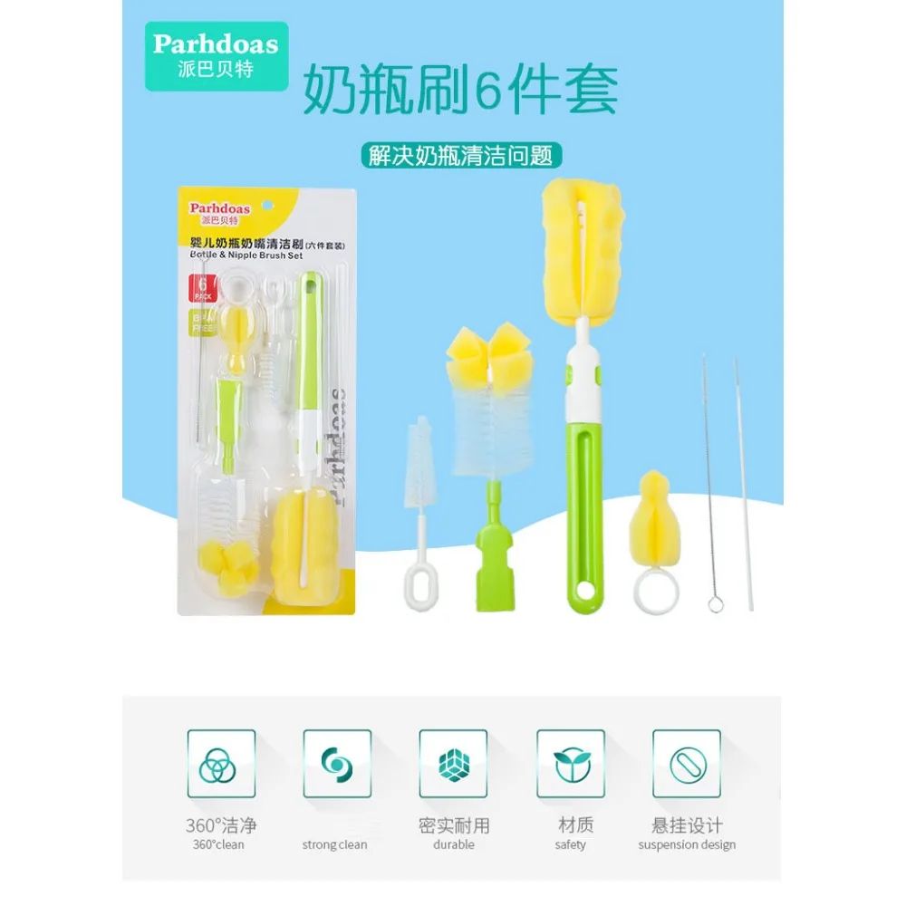 6 шт./набор, щётки для чистки детских бутылочек, с поворотом на 360 градусов