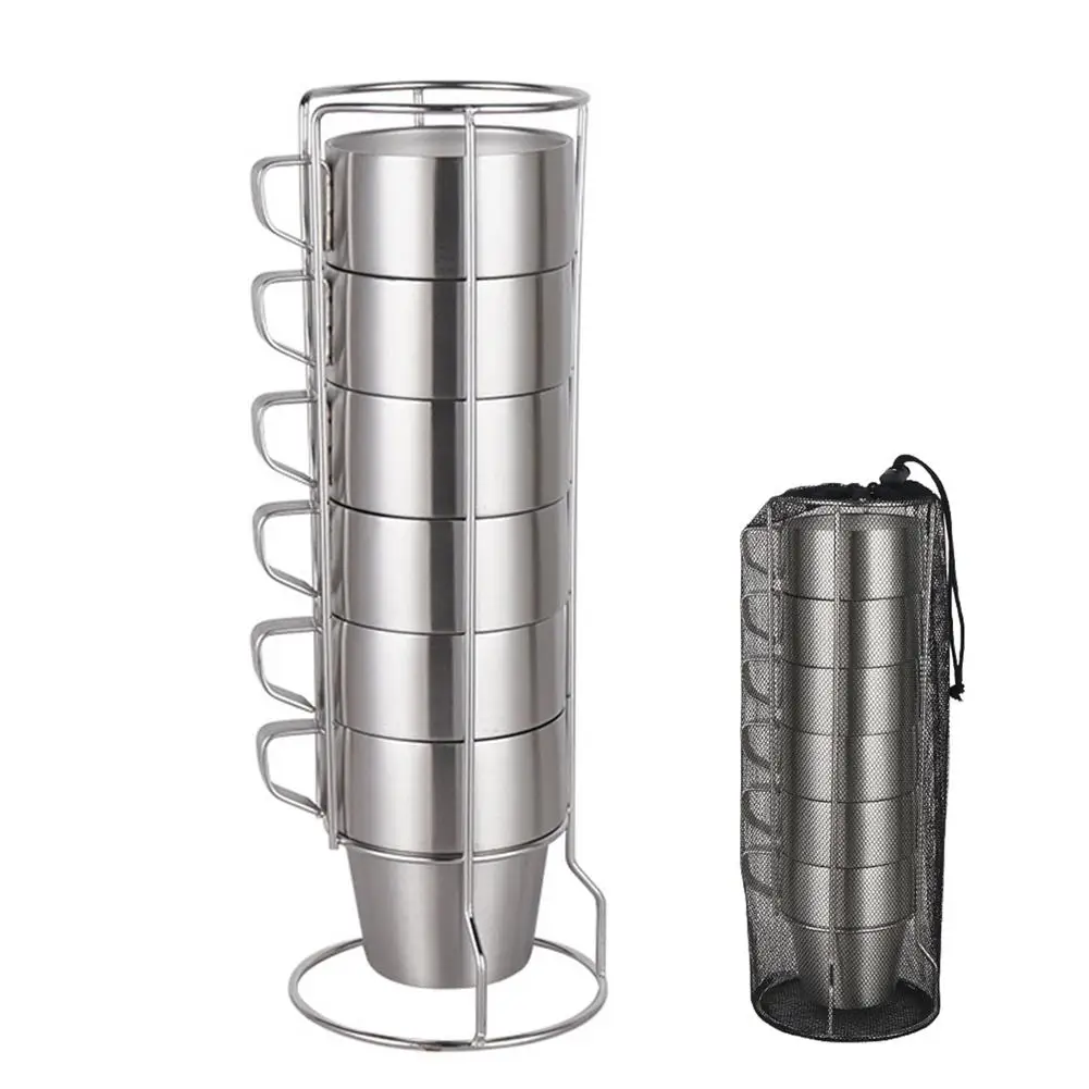 6 шт., портативные штабелируемые кружки из нержавеющей стали 304, 300 мл