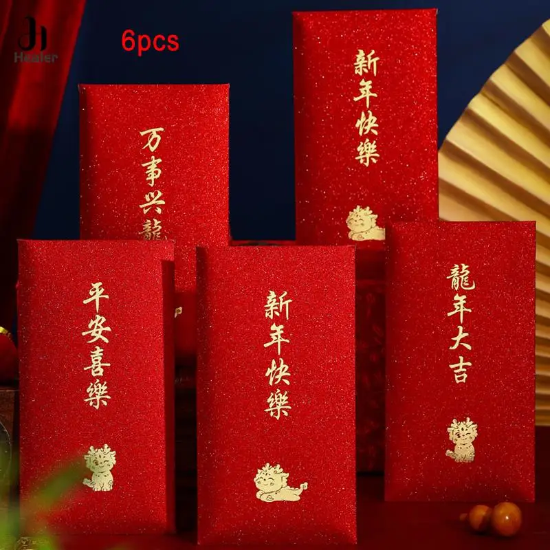6 шт., праздничные конверты для денег, 2024 Год Дракона