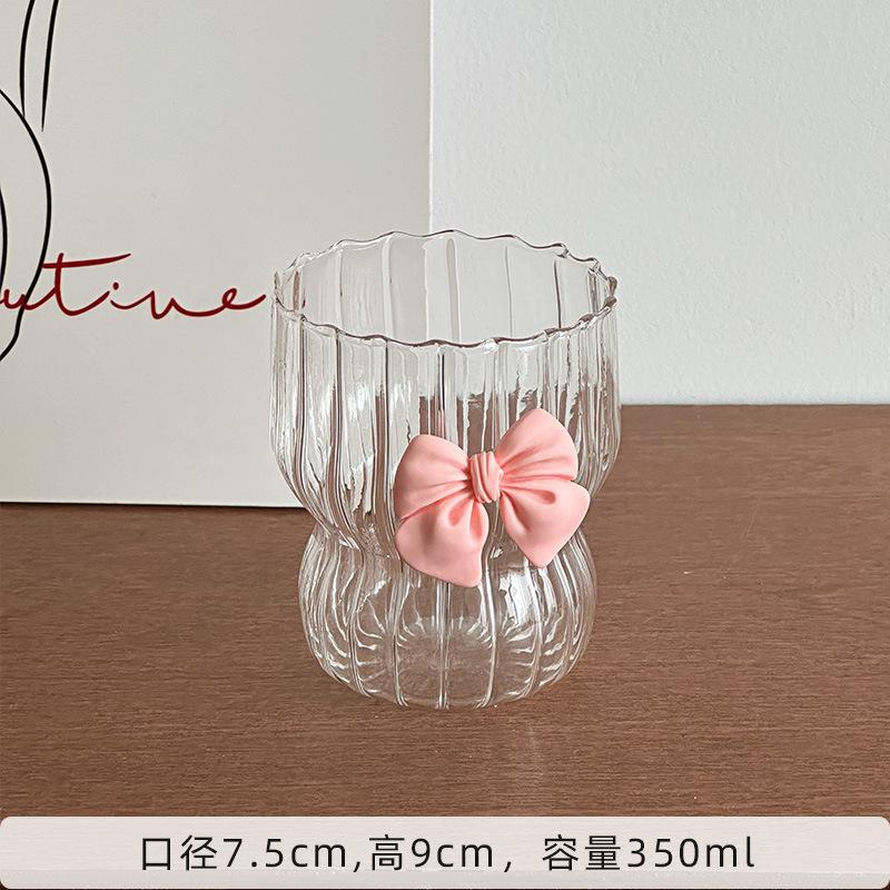 6 шт., розовый бант, стеклянная милая чашка для воды с мультяшным бантом, стеклянная чашка с полосатым рисунком, кофейная кружка для дома, фруктовый чай, лимонад, подарок для девочек 6PCS