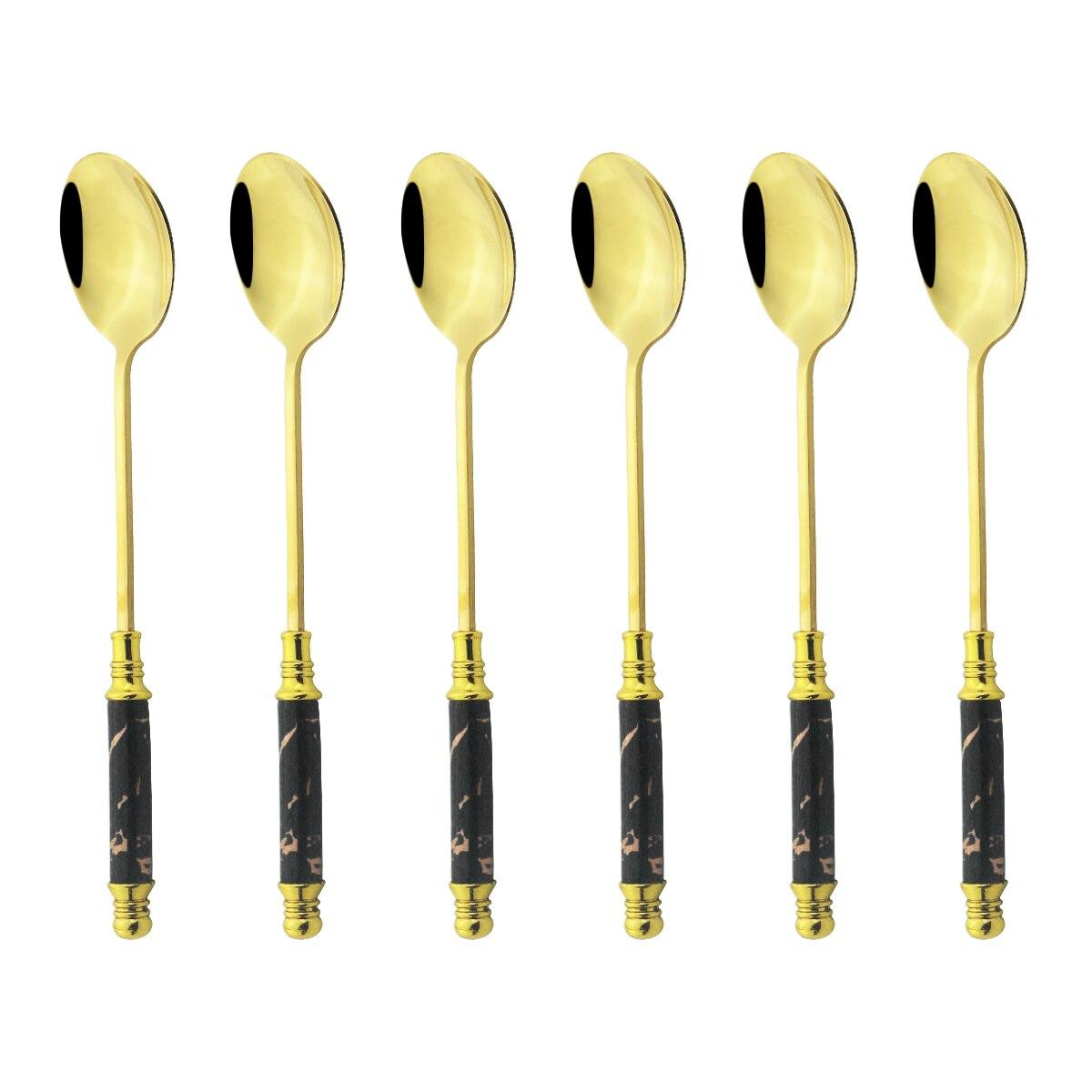 6 шт. столовые приборы, мраморные керамические столовые приборы, кофейная ложка для супа, ужин, чайная ложка, посуда, роскошная элегантная посуда из нержавеющей стали Tea spoon чёрный/золотой