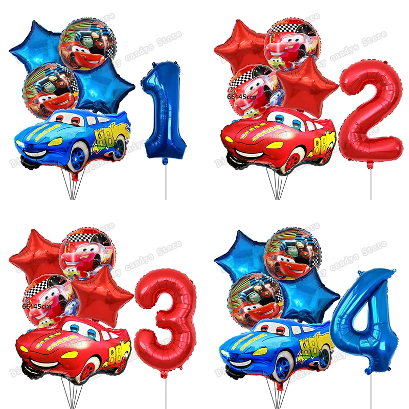 6 шт., фольгированные воздушные шары в виде машины Маккуин, 18 дюймов