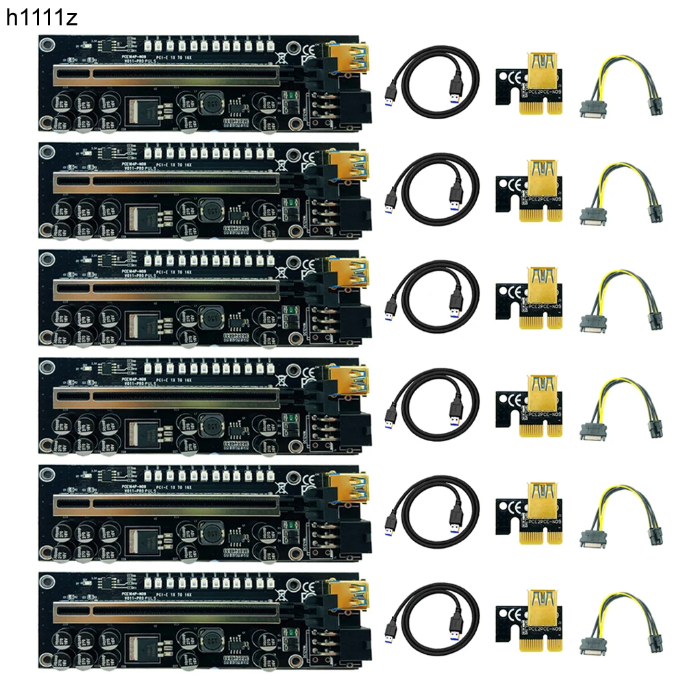 6 шт. PCIE Riser V011 Pro Plus Riser для видеокарты GPU USB 3,0 кабель Riser PCI Express X16 SATA на 6 контактов питания для майнинга биткоинов