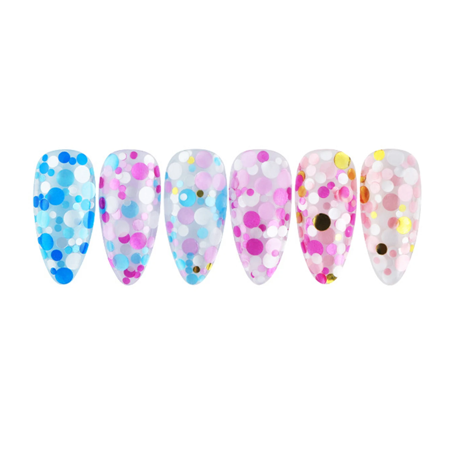 6 ячеек, красочные круглые Блестки для ногтей, уникальные фотообои для украшения ногтей