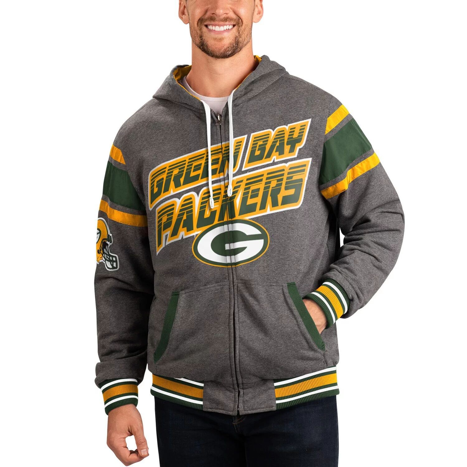 Мужская спортивная куртка Carl Banks зеленого/серого цвета с капюшоном Green Bay Packers Extreme, двусторонняя куртка с капюшоном и молнией во всю спину G-III, Зеленый, Мужская спортивная куртка Carl Banks зеленого/серого цвета с капюшоном Green Bay Packe