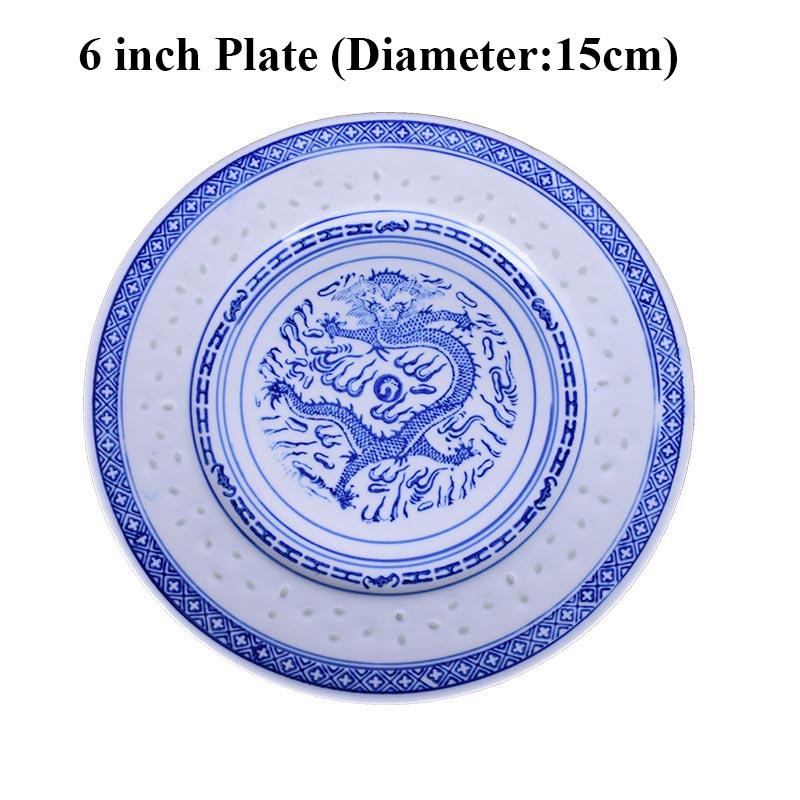 6-10 дюймов Цзиндэчжэнь Ретро Сине-белый Фарфор Тарелки для ужина с драконом Керамическая тарелка Тарелка для стейка Подставка для еды Кухонная посуда