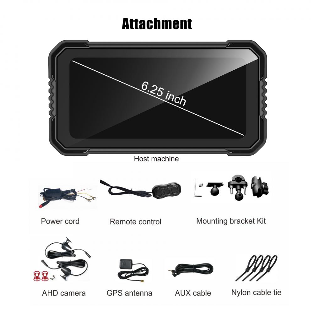 6,25-дюймовый мотоцикл CarPlay IP67 водонепроницаемый внешний портативный экран для мотоцикла с поддержкой CarPlay и Android Auto чёрный