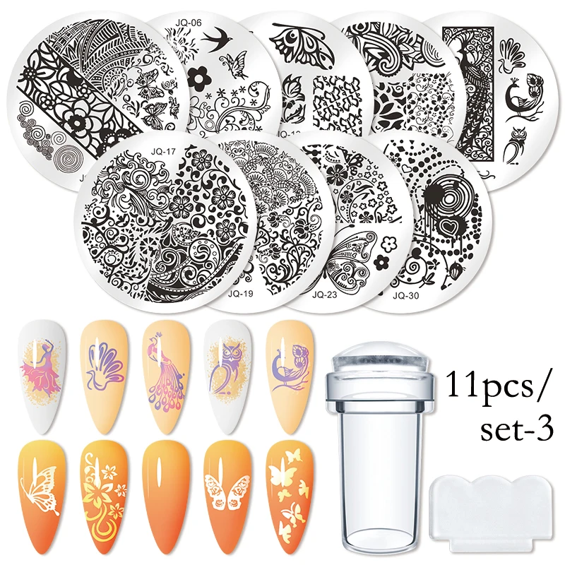 6/9/11 шт набор пластин для штамповки ногтей силиконовый прозрачный штамп трафареты для переноса лака цветочный геометрический DIY шаблон для инструмента для ногтей