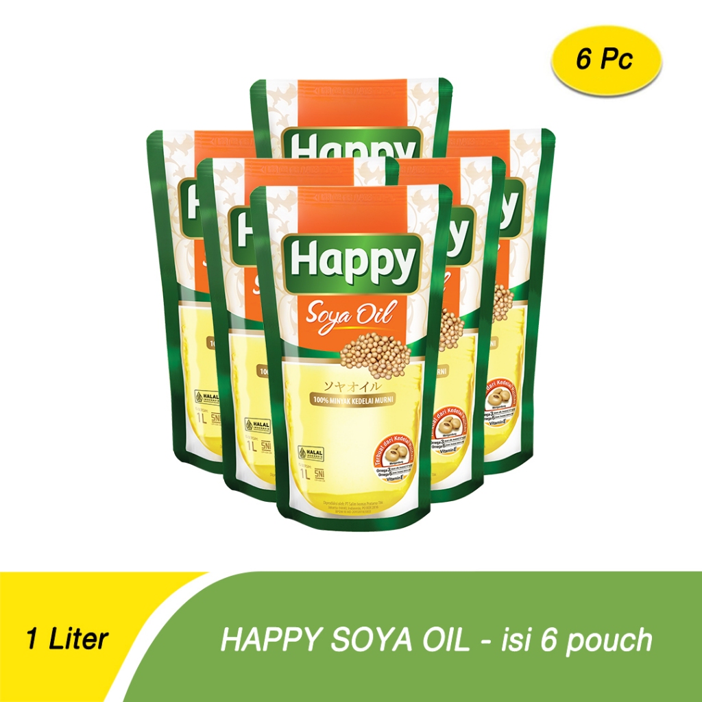 6 PCS - Happy Soya Oil Pouch 1 Liter