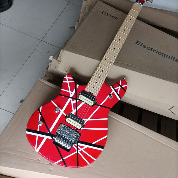 6 strings left handed red&black&white striped electric guitar with maple fretboard