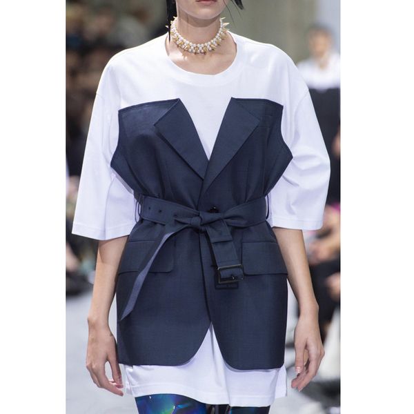 6.11 2020 summer high end women short sleeve tees temperament fashion patchwork fake two piece t-shirt women, White
